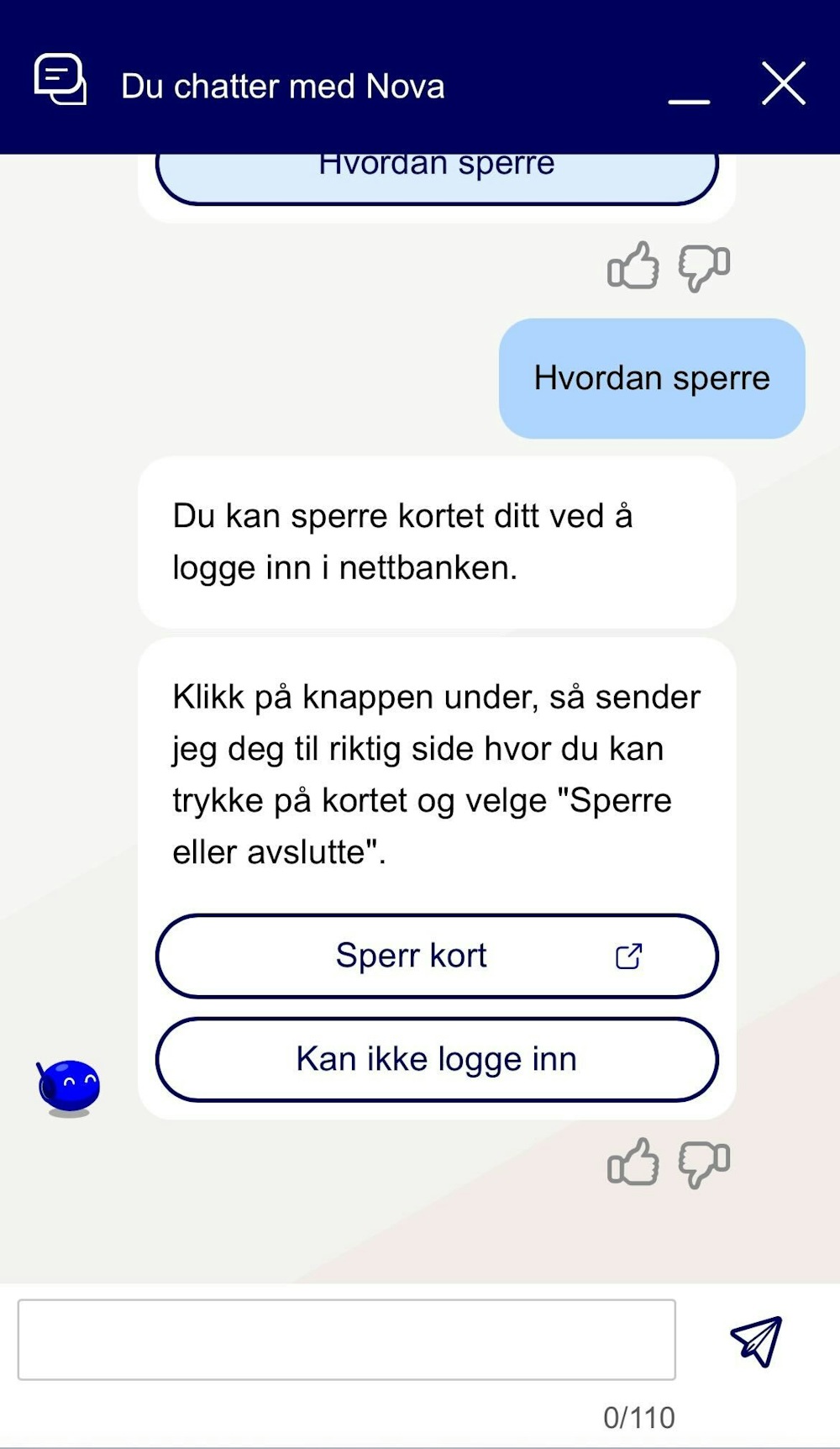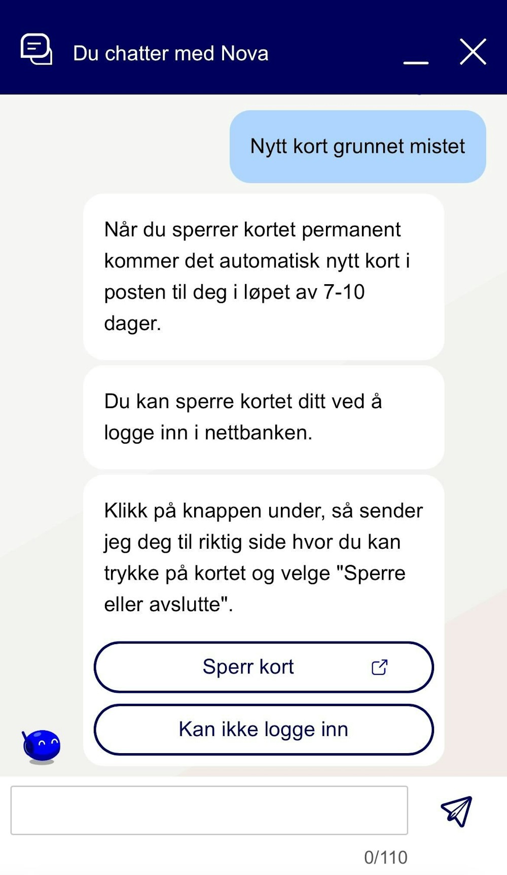 Nordea har en god kundeservice som er åpent hver dag. I chatten kommer du først til en chatbot, men blir kontaktet med en kunderådgiver dersom du ikke får svaret på det du lurer på. På den måten unngår man frustrasjon ved at chatboten ikke gir tilstrekkelig svar.